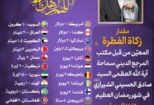 مكتب المرجع الشيرازي يعلن عن قيمة زكاة الفطرة في “24 دولة” عربية…