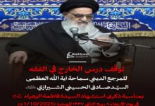 المرجع الشيرازي يوقف درس الخارج في الفقه إحياءً لذكرى استشهاد السيدة الزهراء…