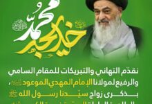 مكتب المرجع الشيرازي يبارك للمسلمين جميعاً حلول عيد الغدير الثاني ذكرى فرحة…