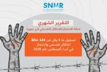الشبكة السورية: 124 حالة اعتقال تعسفي في آب/أغسطس 2025 رغم المرحلة الانتقالية…