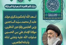 مكتب المرجع الشيرازي يهنئ الأمة الإسلامية بذكرى ولادة الإمام علي السجاد زين…