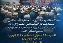 على أعتاب حلول شهر رمضان العظيم.. المرجع الشيرازي يلقي كلمة خاصة بجموع المبلغين الدينيين