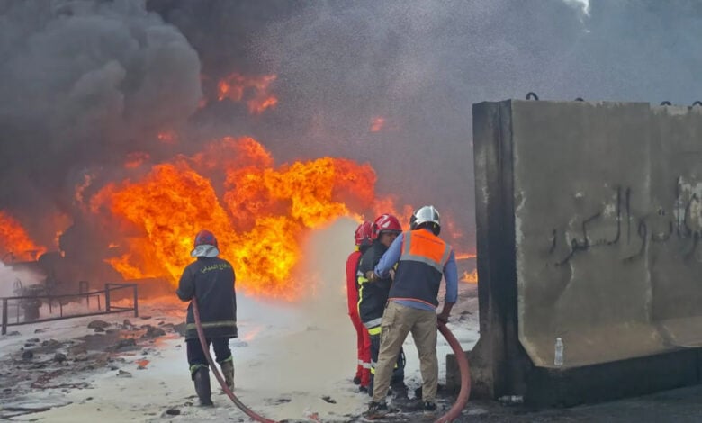 مصرع واصابة 7 موظفين بانفجار كبير واندلاع حريق بمستودع للنفط في البصرة