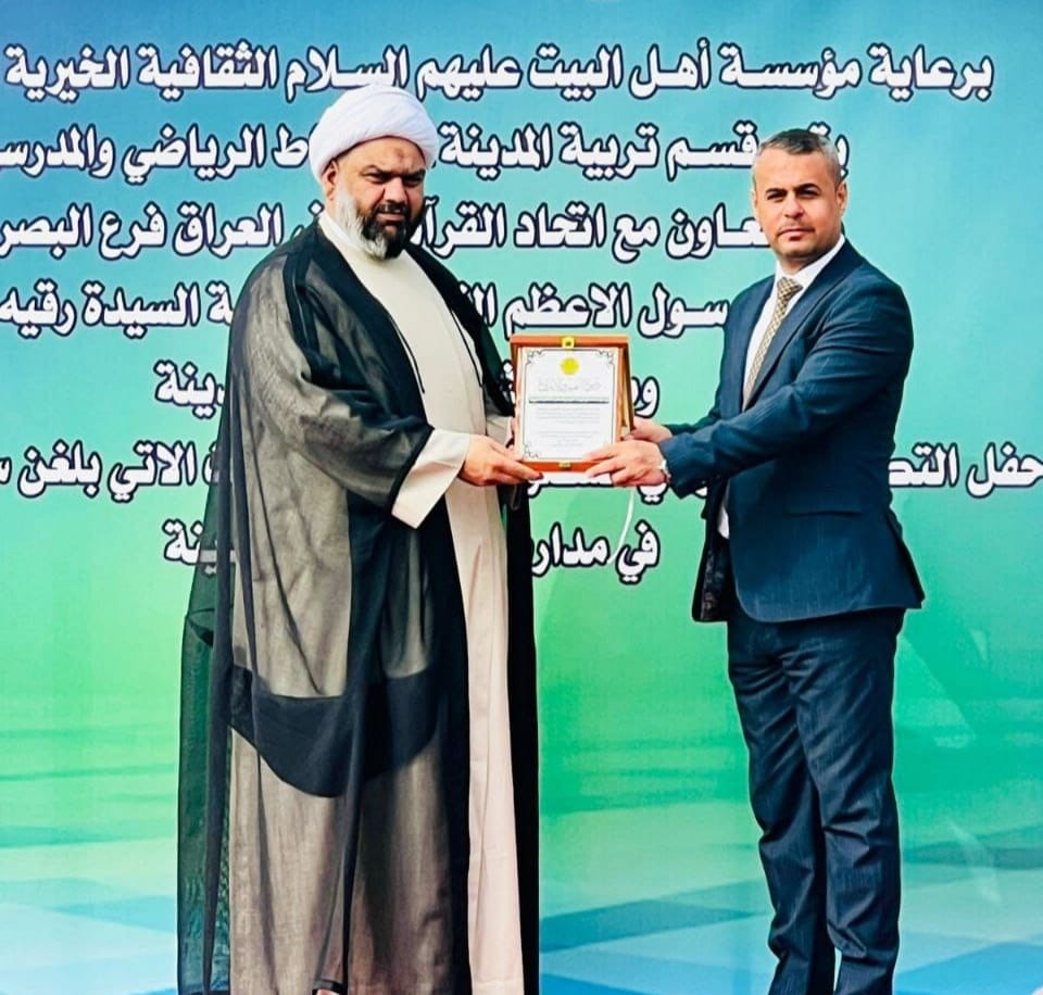 وفي ختام البرنامج، كرّمت المؤسسة مديرية تربية المدينة واتحاد القرآنيين بدرع التميز والإبداع، قبل أن يُختتم المحفل بقراءة دعاء الفرج لمولانا بقية الله في أرضه، سائلين الله تعالى أن يتقبّل هذه الأعمال وأن يجعلها في ميزان القبول، إنه سميع الدعاء.