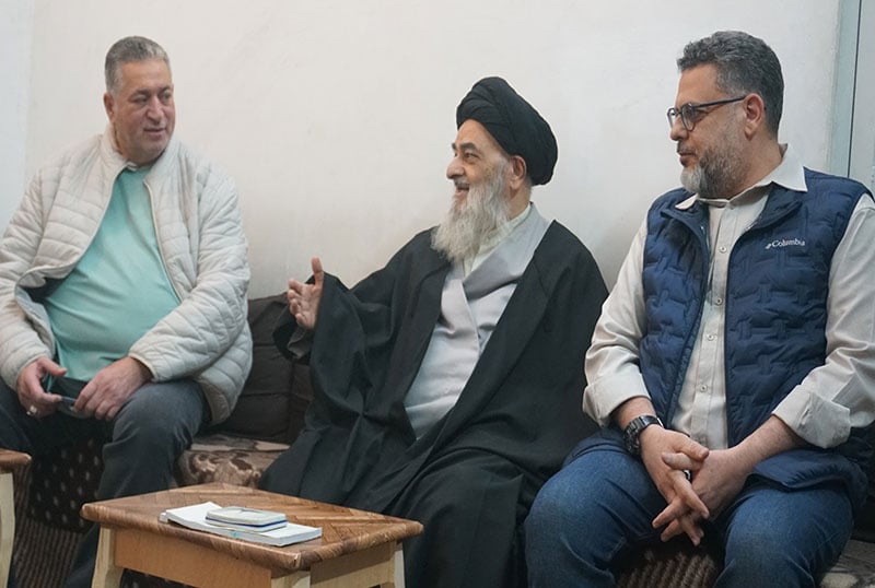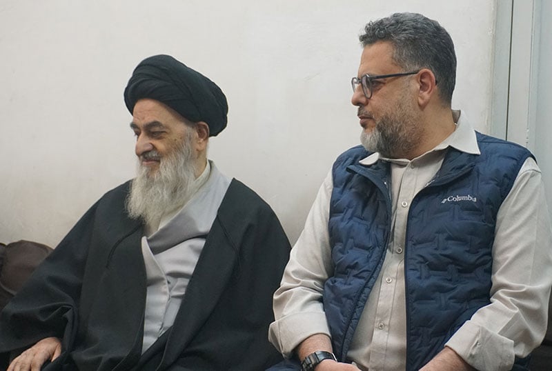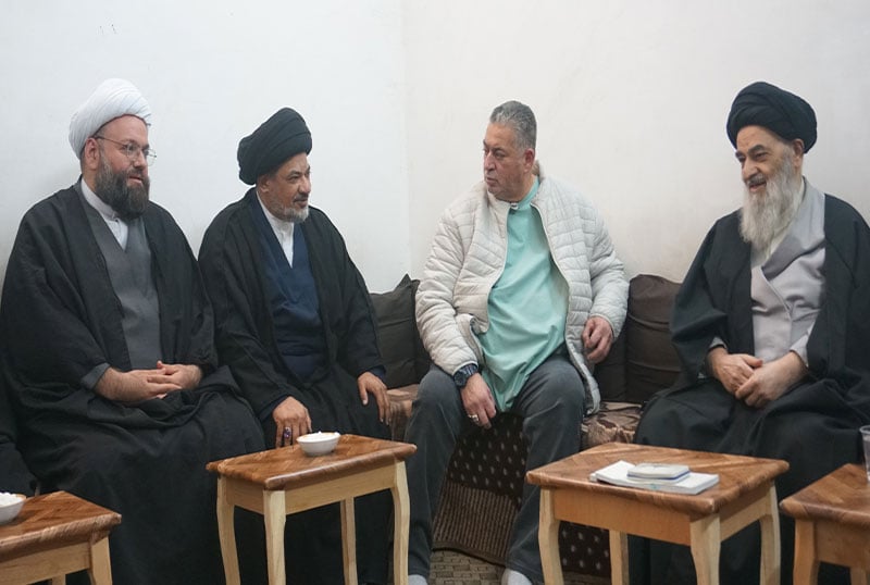 وفد دار القرآن في العتبة الحسينية يزور المرجع الشيرازي في بيته بمدينة قم المقدّسة