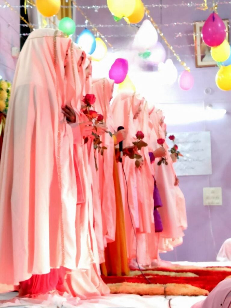 وضمن فعاليات الاحتفال، أُقيم حفل تكليف للفتيات اللواتي بلغن سن التاسعة، في أجواء اتسمت بالوقار والروحانية، حيث قُدمت لهن هدايا تمثلت بـ”الشادر”، وتولت السيدة خانم رباب زيدي تلقينهن مبادئ الدين وأصوله وفروعه، مع إرشادات تتعلق باختيار المرجع الديني، مستخدمة عبارات عربية مترجمة إلى اللغة الأُردية لتسهيل الفهم.