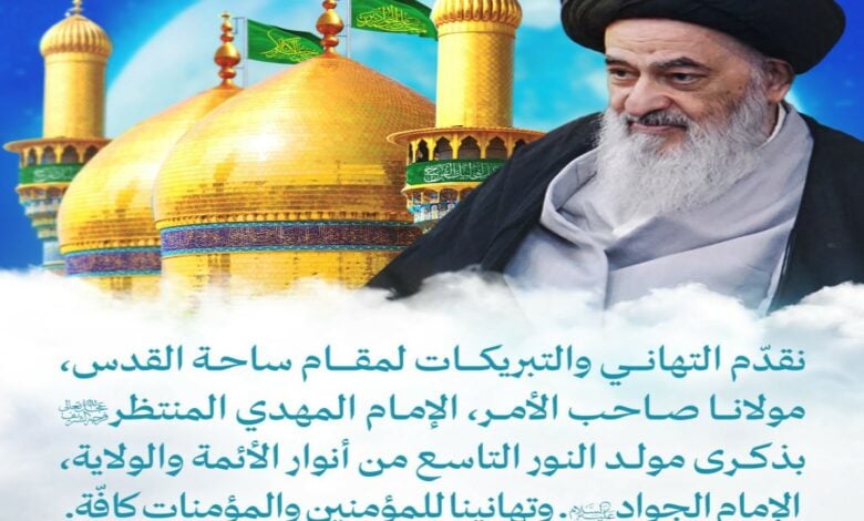 مكتب المرجع الشيرازي يبارك للمسلمين حلول ذكرى ولادة الإمام الجواد (عليه السلام)
