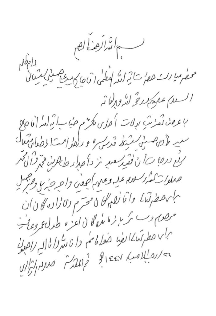 ويُذكر أن نجل المرجع الشيرازي، سماحة السيد حسين الحسيني الشيرازي، حضر إلى بيت الفقيد الراحل في مدينة قم المقدسة، ناقلًا تعازي ومواساة المرجع الشيرازي إلى أنجال وذوي الفقيد ومحبيه.