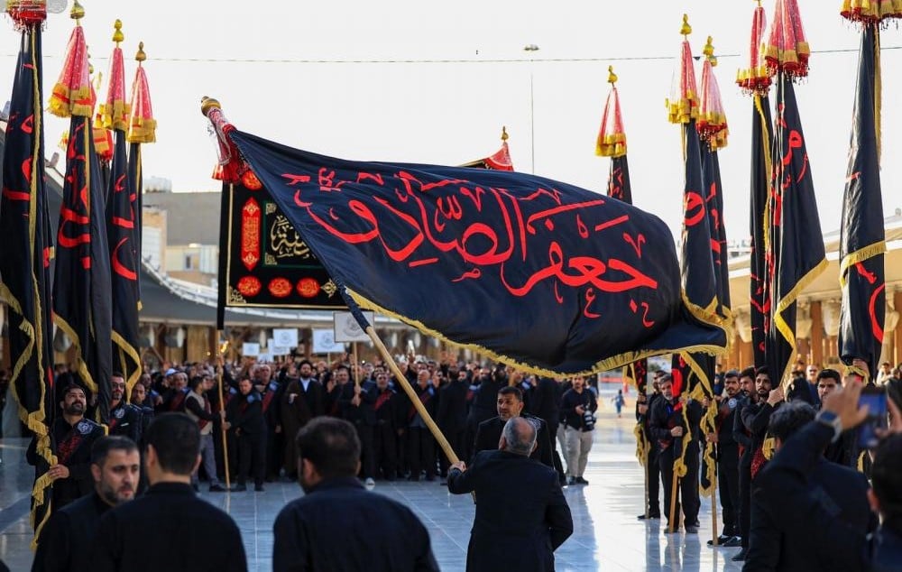 موكب العتبة العلوية يحيي ذكرى شهادة الإمام الصادق (عليه السلام) في مدينة الكاظمية المقدسة