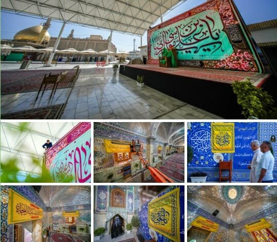 الحرم العسكري المطهّر يتزيّن بلافتات الفرح والسرور في ذكرى ولادة الإمام الرضا (عليه السلام)