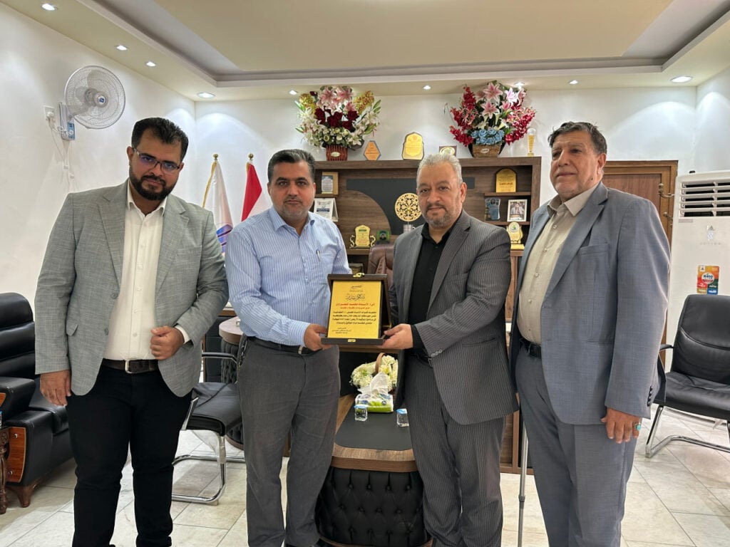 وفي سياق متصل، زار وفد المجموعة دائرة ماء كربلاء، حيث التقى بالمهندس الأقدم محمد فاضل عبد العباس النصراوي، مدير الدائرة، وقدم له درع التكريم تقديراً لجهوده الكبيرة في تأمين المياه والخدمات الأساسية للزائرين خلال الزيارات المليونية.