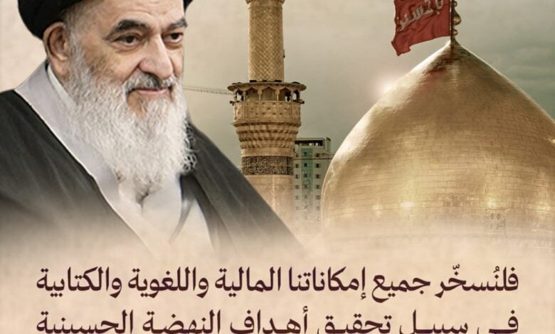 شدّد المرجع الديني الأعلى سماحة آية الله العظمى السيّد صادق الحسيني الشيرازي على ضرورة تسخير جميع الإمكانات والطاقات في سبيل أهداف النهضة الحسينية المباركة، بما يضمن بقاءها حيّة ووصول رسالتها إلى العالم أجمع.