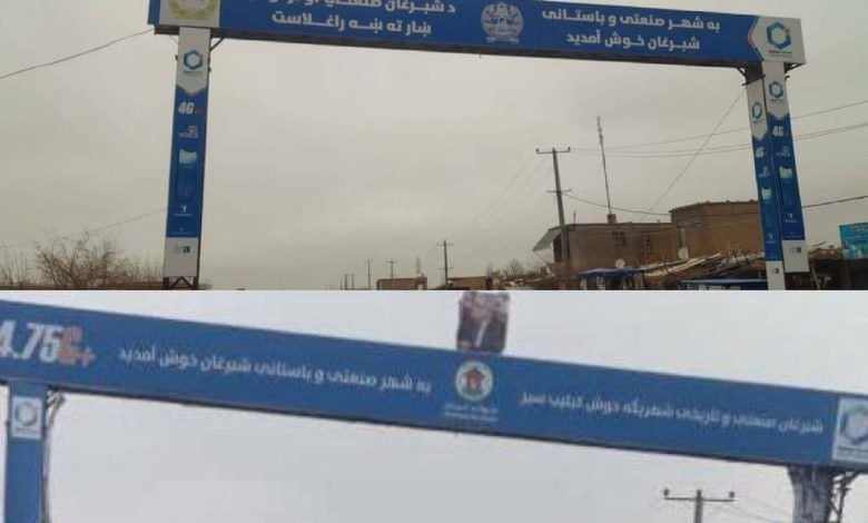 طالـ،ـبان تزيل اللغة الأوزبيكية من لوحة مدخل شبرغان تثير جدلاً في ولاية جوزجان