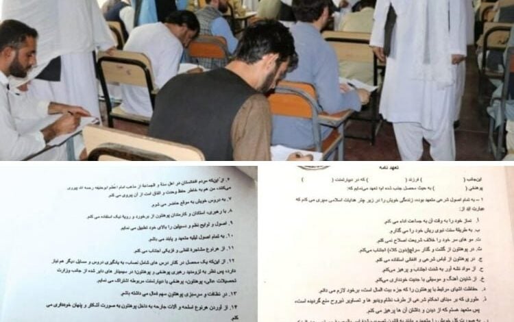 أفادت مصادر مطلعة بأن حركة طالبـ،ـان طلبت من طلاب جامعة كابول التوقيع على تعهد يلزمهم باتباع المذهب الحنفي، ويشمل مجموعة من المبادئ السلوكية والانضباطية. وقد تم فرض هذا الإجراء القسري على الطلاب رغم اعتراضات بعضهم.