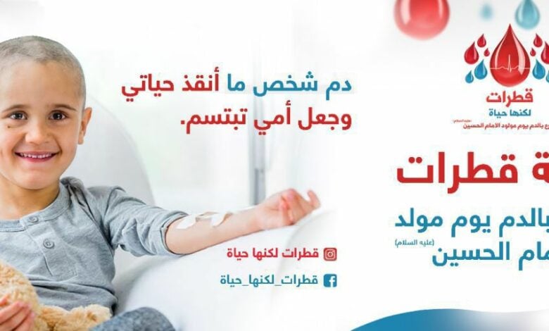 “قطرات لكنها حياة”.. حملة للتبرع بالدم تزامنًا مع ولادة الإمام الحسين (عليه السلام)
