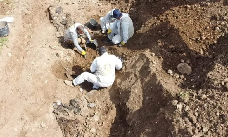وأضاف أن “العمل سيستمر حتى السادس من أبريل / نيسان المقبل لإكمال فتح المقابر”، لافتاً إلى أن “عدد الجثث المستخرجة حتى الآن تجاوز الثلاثين”.