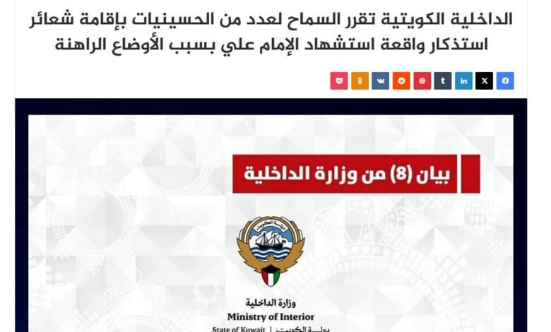 قرار كويتي بتقييد إقامة شعائر استشهاد الإمام علي (عليه السلام) يثير ردود فعل مستنكرة