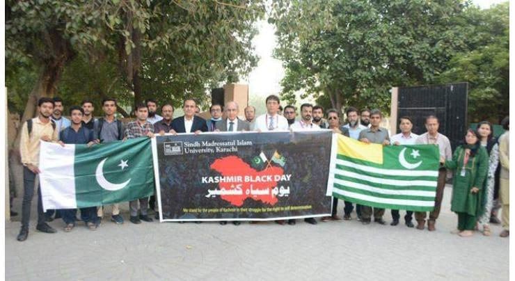 احتشد طلاب وأساتذة جامعة “مدرسة الإسلام في السند” بمدينة كراتشي، لإحياء ذكرى “اليوم الأسود لكشمير”، في تظاهرة ضد الاحتلال الهندي الذي بدأ منذ السابع والعشرين من أكتوبر 1947 وما زال مستمراً حتى اليوم.