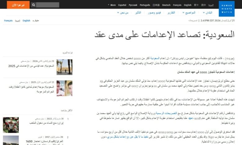حذّرت عشرات المنظمات الحقوقية الدولية من تصاعد وتيرة تنفيذ أحكام الإعدام في المملكة العربية السعودية خلال السنوات الأخيرة، مؤكدة أن تجاوز عدد الإعدامات حاجز 2000 حالة خلال عقد واحد يعكس توسعاً ملحوظاً في استخدام هذه العقوبة، ويثير تساؤلات حول مدى توافقها مع المعايير الدولية لحقوق الإنسان.