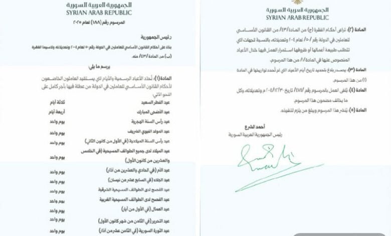 أثار مرسوم حكومي جديد في سوريا جدلاً واسعاً، بعد أن تضمن إلغاء عدد من المناسبات الوطنية والأعياد القومية الخاصة بالمكونات السورية، في خطوة اعتبرها ناشطون ومراقبون تكريساً لنهج الإقصاء الثقافي والتنوع المجتمعي، وسياسات حزب البعث السابقة.
