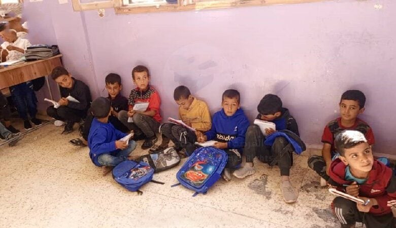وتشير تقارير محلية إلى أن عدداً من المدارس تعاني من انعدام شبه كامل لمقومات العملية التعليمية، إذ تفوق أعداد التلاميذ في الصفوف طاقتها الاستيعابية، ما يجبر الكثير منهم على الجلوس على الأرض خلال الحصص الدراسية، وسط غياب المقاعد والطاولات والأبواب والشبابيك وحتى الألواح التعليمية.