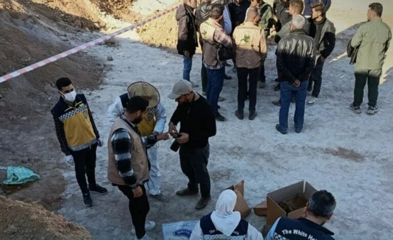 وبحسب المعلومات الأولية، باشرت فرق الدفاع المدني السوري عمليات الانتشال، حيث تم استخراج رفات أربعة أشخاص من المقبرة. وتشير المعطيات إلى أن الضحايا قضوا خلال فترة سيطرة النظام السابق، دون توفر تفاصيل إضافية حتى الآن بشأن هوياتهم أو التاريخ الدقيق لوفاتهم.