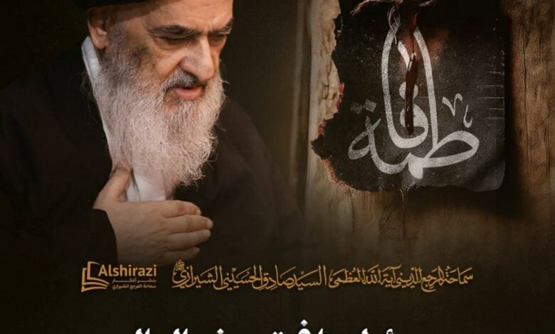 المرجع الشيرازي: مسؤوليتنا تعريف العالم بالسيدة الزهراء (عليها السلام) وضرورة توسيع شعائرها