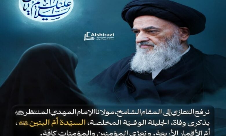 المرجعية الشيرازية الشريفة تعزّي بذكرى شهادة السيدة أم البنين (عليها السلام) وتحيي مجالسها العزائية