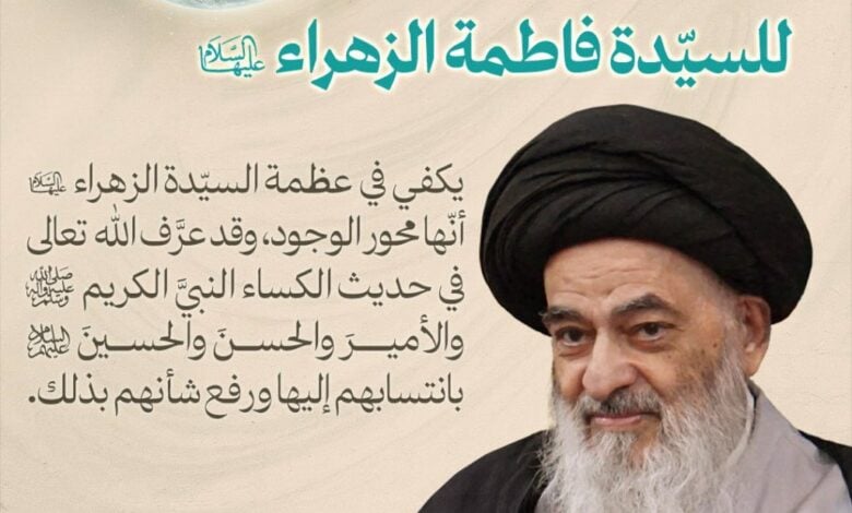 أكد المرجع الديني الأعلى سماحة آية الله العظمى السيد صادق الحسيني الشيرازي دام ظله، أن مكانة السيدة فاطمة الزهراء عليها السلام تتجاوز حدود الوصف البشري، مشيراً إلى أنها «محور الوجود، وقد عرّف الله تعالى في حديث الكساء النبيَّ الكريم والأميرَ والحسنَ والحسينَ عليهم السلام بانتسابهم إليها ورفع شأنهم بذلك».