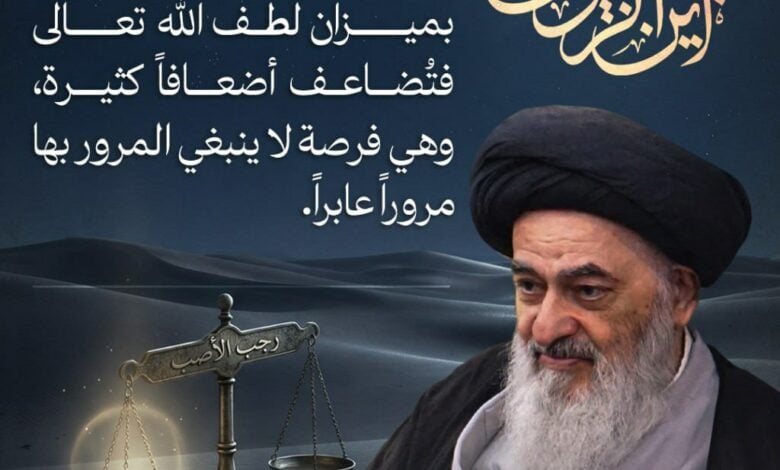 وقال سماحته في كلمات قصار نشرها المكتب الخاص: “شهر رجب يذكّرنا بفرصة إلهية عظيمة؛ زمن تُوزن فيه الحسنات بميزان لطف الله تعالى فتُضاعف أضعافاً كثيرة، وهي فرصة لا ينبغي المرور بها مروراً عابراً.”