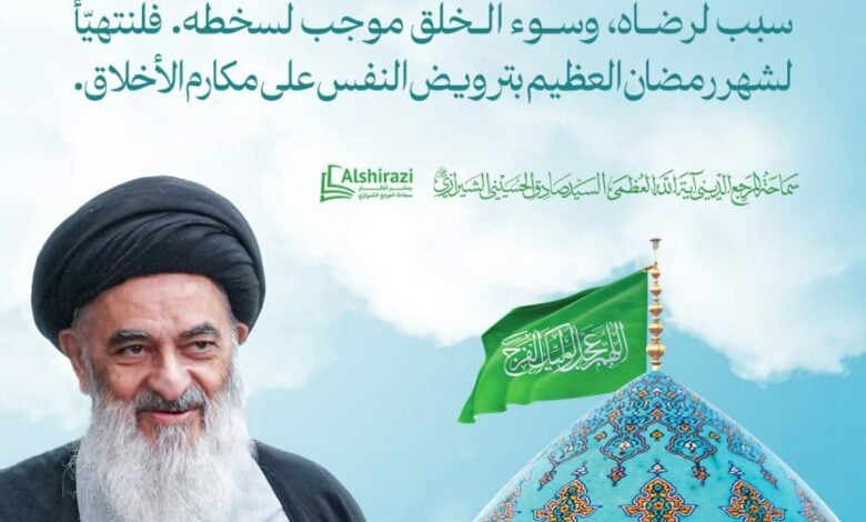 حثّ المرجع الديني الأعلى سماحة آية الله العظمى السيد صادق الحسيني الشيرازي المؤمنين على ضرورة اغتنام الأيام المتبقية من شهر شعبان المعظّم، والاستعداد الروحي والعملي لاستقبال شهر رمضان المبارك، عبر الانشغال بما يوجب رضا الله تعالى ورضا الإمام المهدي (عجل الله تعالى فرجه الشريف).