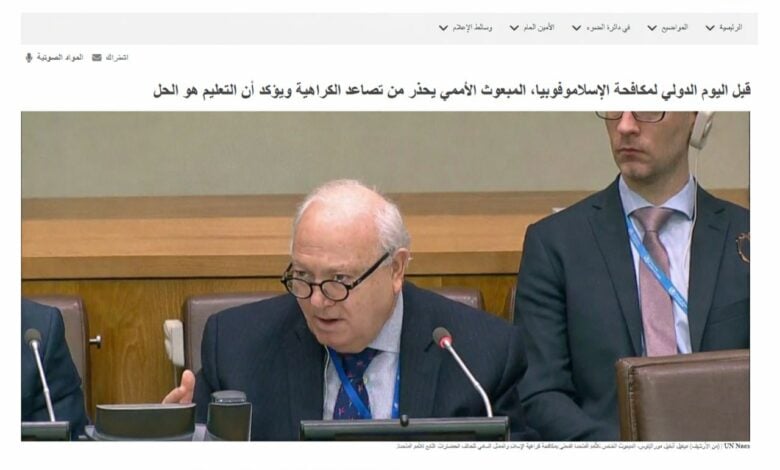 مبعوث أممي يحذر من تصاعد الإسلاموفوبيا عالمياً ويؤكد أهمية التعليم لمواجهتها