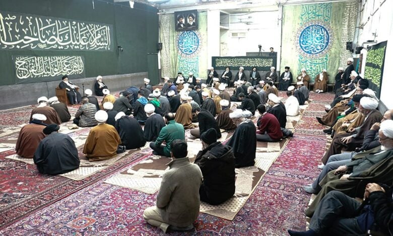 During the session, Grand Ayatollah Shirazi spoke about the manifestations of Asma al-Husna (the Beautiful Names of God). He referred to a narration in the interpretation of verse 180 of Surah Al-A‘raf, which states that the Asma al-Husna are the names of Almighty God, while their manifestations are the Fourteen Infallibles (peace be upon them).