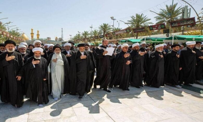 In Karbala, a unified mourning procession of seminary students took place on Tuesday morning, with wide participation from clerics, scholars, and students of religious sciences. The procession began from the courtyard of Al-Abbas Shrine, passed through the area between the two holy shrines, and concluded at the courtyard of Imam Hussein Shrine.
