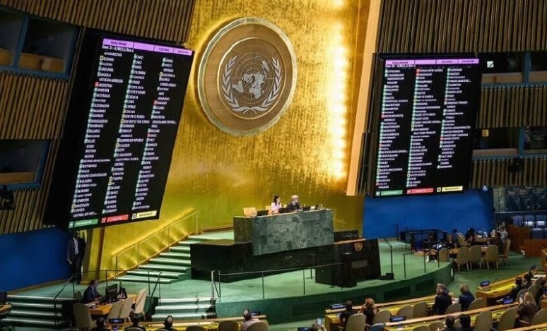 The United Nations General Assembly has adopted a resolution by an overwhelming majority, with 139 countries voting in favor, underscoring Israel’s obligation to comply with the advisory opinion of the International Court of Justice (ICJ) and to uphold its responsibilities toward the Palestinian people.