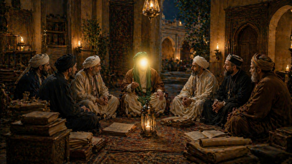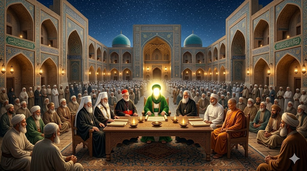 آن حضرت با دانشمندان و بزرگان آیینهای گوناگون نشستهای علمی برگزار میکردند و به پرسشها و شبهات با آرامش، استدلال و احترام پاسخ میدادند.