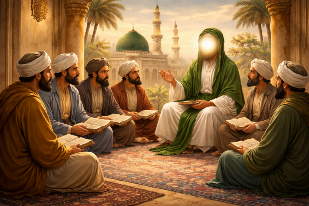 در چنین شرایطی، امام صادق علیه السلام نهضت علمی گسترده‌ای را پایه‌گذاری کردند و به تبیین معارف اسلامی، اصلاح انحرافات فکری و گسترش دانش دینی پرداختند.