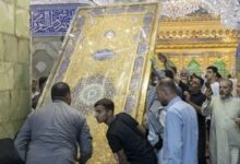نصب دوباره درِ قبله حرم حضرت عباس علیه السلامپس از طلاکاری و…