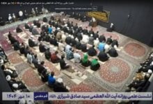 شرکت فرزند آیت الله العظمی سید صادق حسینی شیرازی در مجلس ختم همسر آیت الله العظمی سیستانی