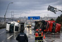 بادهای سهمگین استانبول را درنوردید؛ واژگونی کامیونها و اختلال در تردد شهری…
