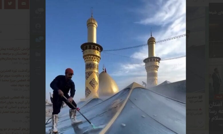 خادمان حرم مطهر حضرت اباالفضل العباس علیه السلام عملیات شستوشو و نظافت گنبدهای شیشهای این بارگاه مطهر را با دقت و مراقبت کامل انجام دادند.