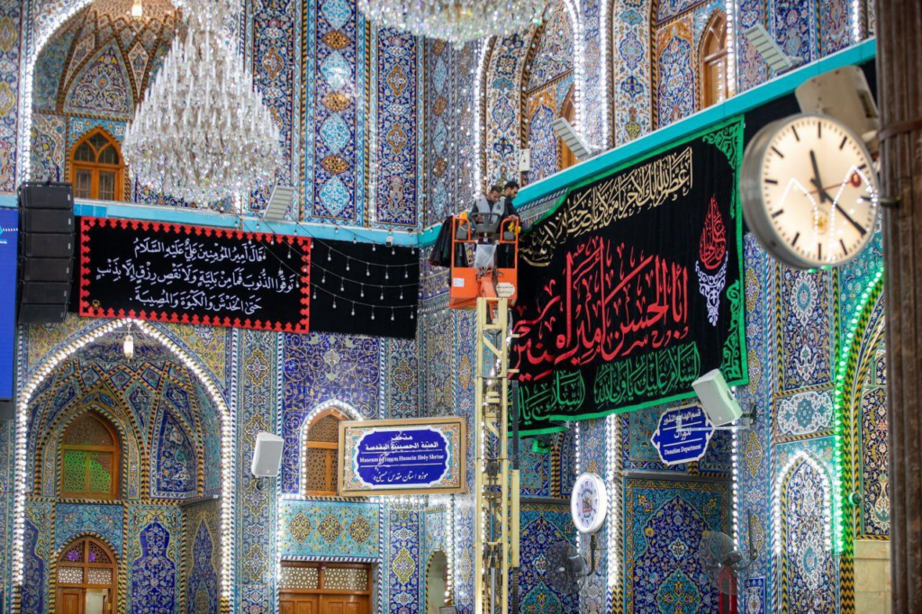 حرم مطهر امام حسین علیه السلام سیاهپوش شد؛ آمادهسازی صحن مطهر برای مراسم عزاداری شهادت امیرالمومنین علیهالسلام در کربلا