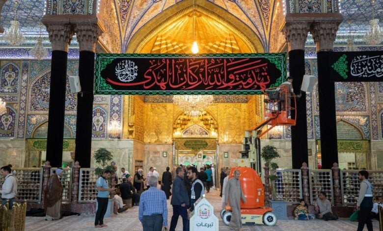در آستانه سالگرد شهادت امیرالمؤمنین حضرت علی علیهالسلام، صحن مطهر حرم حسین علیه السلام در شهر مقدس کربلا سیاهپوش شد و بنرها و پرچمهای عزاداری در ورودیها و راهروها نصب گردید تا فضای معنوی ویژهای برای زائران فراهم شود.