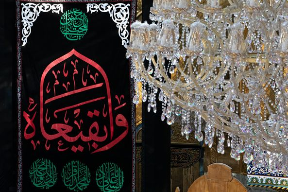 همزمان با سالروز تخریب قبور مطهر ائمه اطهار علیهم السلام در بقیع، حرمهای مطهر حسینی و عباسی در کربلا با پرچمهای سیاه و نوشتههای تسلیت مزین شد.