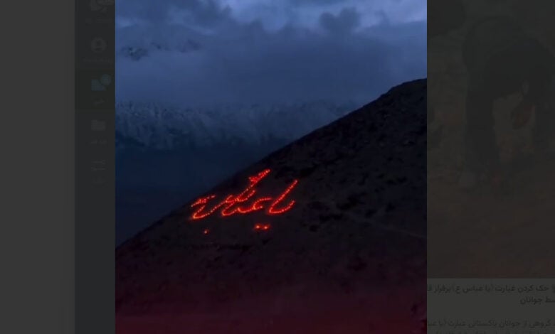 ابراز ارادت جوانان پاکستانی به حضرت عباس علیه السلام با حک کردن «یا عباس» بر فراز قله‌های بلند کوهستانی پاکستان