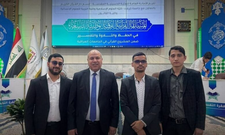 دانشگاه کوفه در نهمین مسابقه ملی قرآنی عراق میان ۴۰ تیم شرکتکننده، مقام اول را در بخشهای حفظ، تلاوت و تفسیر کسب کرد.