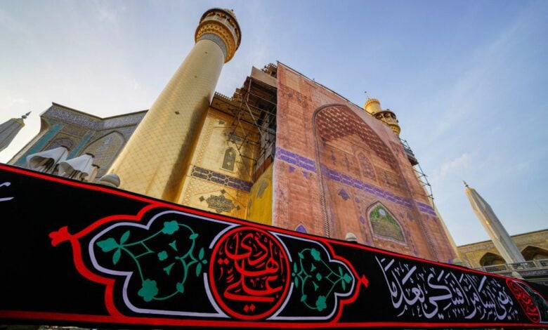 به مناسبت سالروز شهادت حضرت امام هادی علیه‌السلام، حرم مطهر امیرالمؤمنین حضرت علی علیه‌السلام در نجف اشرف سیاه‌پوش شد.