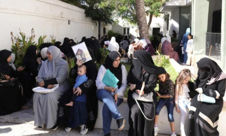 صدها پناهنده سوری در لیبی برای دریافت بلیتهای رایگان سفر به دمشق به یک آژانس مسافرتی در طرابلس مراجعه کردند.