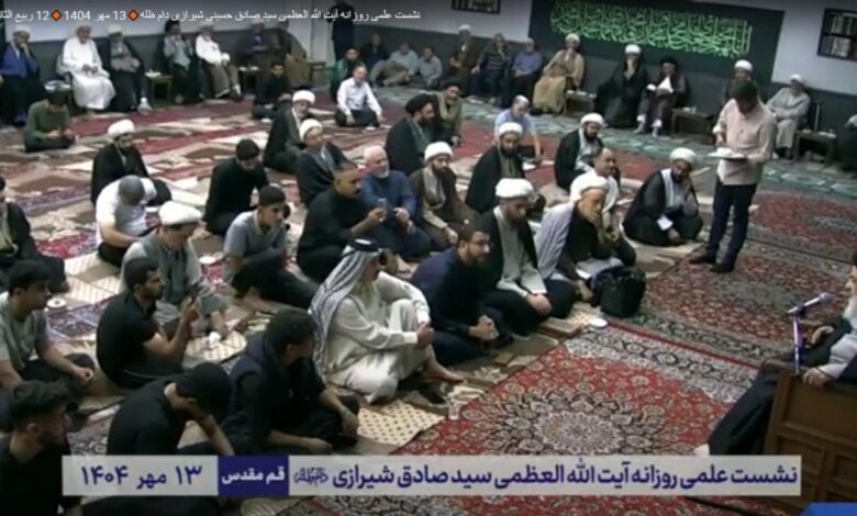 نشست علمی روزانه آیتاللهالعظمی سید صادق حسینی شیرازی، روز یکشنبه دوازدهم ربیع الثانی سال 1447 برگزار شد.