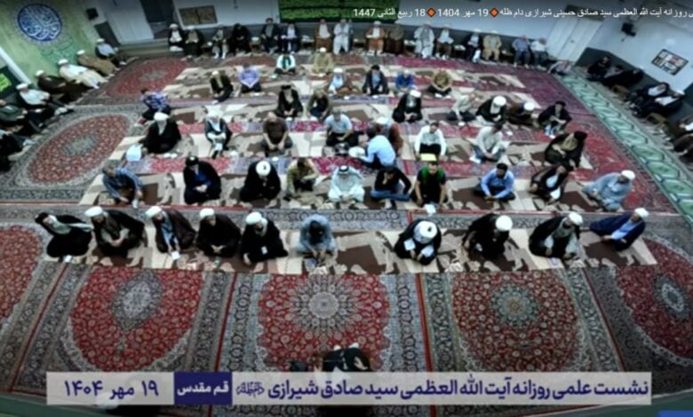 نشست علمی روزانه آیتاللهالعظمی سید صادق حسینی شیرازی، روز شنبه هجدهم ربیع الثانی سال 1447 برگزار شد.